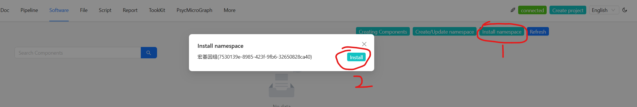 • click Install namespace -> Install